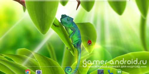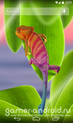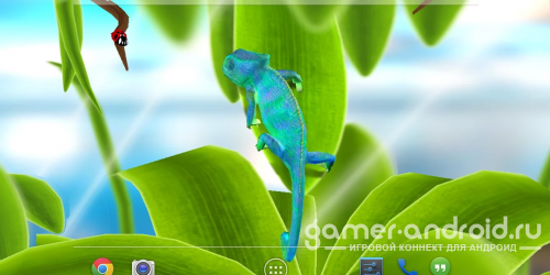 Chameleon 3D Live Wallpaper - живые обои с очаровательным хамелеончиком. С одной стороны простые, а с другой и не весьма простые живые обои, так как наш главный герой может изменять цвет и наблюдать за вами, как и вы за ним. Обои подходят как на смартфон, так и планшет.