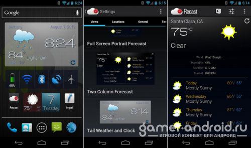 Recast Weather and Widgets - это приложение, поможет Вам узнавать погоду, а так же поставить виджет погоды с часами на рабочий стол вашего Android. В этом приложений большой выбор настроек, Вы сможете настроить: цвет, прозрачность, команду и многое другое.