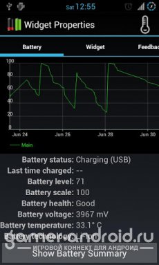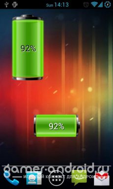 Dual Battery Widget - красивый и стильный виджет, который показывает уровень заряда аккумулятора в процентах. Очень удобно и красиво, а также функционально. Ведь можно назначить размеры виджета, чтобы вам было удобнее, кроме того можно сменить размер шрифта. Вообщем очень красивый виджет для вашего смартфона!
